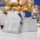 Stilvolle Geschenkverpackung, in einem simulierten, Schwarzweiss-Kuhfellentwurf.