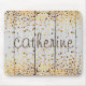 Glühendes Konfetti Gold auf weißer Oberfläche mit rosa Buchstaben, Schriftart Farbe kann geändert werden.