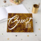 Ein Imitat aus braunem und goldfarbenem Leder hat einen gepolsterten Marmorlook, auf dem ein stilvoller, feiner weißer Schriftart mit den Worten "Gästebuch" steht