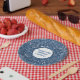 Imitate Blauer Glitzer Textur mit benutzerdefinier Pappteller