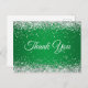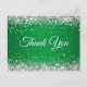 Erstellen Sie Ihre eigenen eleganten Dankeschön Postkarten. Imitate glänzen silberfarbenen Glitzer mit Glitzern vor einem glamourösen, leuchtend markanten grünen Farbverlauf. Alle glänzenden silbrigen funkelnd Effekte in diesem modernen mädchenhaften Design werden mit digitaler Grafik erstellt. Ein kreatives Design für Ihren Wintergeburtstag. Silber und Grün für die Ferien.
