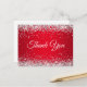 Erstellen Sie Ihre eigenen eleganten Dankeschön Postkarten. Imitate glänzen silber mit Glitzern vor einem glamourösen, leuchtend roten Farbverlauf. Alle glänzenden silbrigen funkelnd Effekte in diesem modernen mädchenhaften Design werden mit digitaler Grafik erstellt. Ein kreatives Design für Ihren Wintergeburtstag. Silber und Rot für die Ferien.