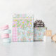 Eine Rolle chic Giftpackung, mit einem hübschen, nostalgischen Imitat Patchwork-Muster von rosa Dogroses auf himmelblauem Hintergrund mit passenden Polka-Punkten, Streifen und Pillen. Als Teil der Posh & Painterly 'Rosy Posy' Kollektion kann dieses Muster leicht an jede Rolle von Wrapping Paper angepasst werden.