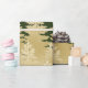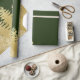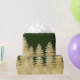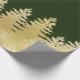Elegantes Verpackungsgeschenk mit dunkelgrünem Hintergrund und Silhouette aus goldgelbem Kiefernwald. Ideal, um Geschenke für ihn zu verpacken.