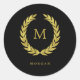 Imitate Gold Laurel Wreath auf Schwarz mit Monogra Runder Aufkleber