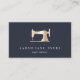 Elegante Visitenkarten für nahtlose, modische Designer, Schneider, Umbaufirmen oder Kostümdesigner verfügen über eine Nähmaschine in Imitaten mit Goldfolie, auf einem marineblauen Hintergrund mit zwei Textzeilen in Weiß. Passen Sie die Rückseite mit Ihren vollständigen Kontaktdaten an.