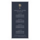 Das elegante Design der Rack-Karte zeigt Ihnen Ihre Services oder Salon-Preisliste schön an. Das Design zeichnet sich durch eine klassische Weißschrift auf einem marineblauen Hintergrund aus, der mit einem tropischen Imitat mit Goldfolienpalmenbildern geschmückt ist. Enthält vier individuell anpassbare Überschriften und Textfelder sowie Platz für Ihre Kontaktinformationen in Ihrem Unternehmen ganz unten. Um das Layout anzupassen, geben Sie Ihren Text ein und ändern Sie mithilfe der Funktion Anpassen die Positionierung und die Größe des Schriftartes.