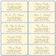 Personalisierter Name und Adresse der Hochzeitsgast-Labels mit einem eleganten, schicken Imitat goldenen Kalligraphie-Skript über einem gelben cremefarbenen Hintergrund.