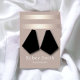 Bronze und Imitate Gold-Folie Ohrring-Display-Karte. Elegantes goldenes Frontsystem mit dunkler Holzkohle, Website und Kontaktdetails auf der Rückseite.