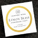 Elegantes Produktetikett mit einem goldenen Rahmen für Imitate (gedrucktes Bild) und Ihrem individuellen Logo. Schriftart und Schriftart sind individuell einstellbar. Verschieben und verkleinern Sie das Logo mit dem Designwerkzeug.