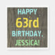 Dieses lustige Geburtstagsparty-Design enthält eine Nachricht wie "HAPPY 63. BIRTHDAY, JESSICA!", in der der Name personalisiert sein kann. Der Hintergrund ist mit einem rustikalen, braunen Holzkornmuster aus Imitat gestaltet. Der anpassbare Text der Nachricht weist Farben wie Blau, Gelb und Grün auf und hat ein Aussehen, das durch das inspirierte, gestrichelte Schriftzeichen ersetzt wird. Napkins wie diese könnten vielleicht auf einer Geburtstagsparty für jemanden benutzt werden, der seinen dreiundsechzigsten Geburtstag feiert. [~Z0000292]