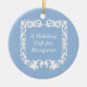 Ein zweiseitiges blauer Ornament mit einem Imitat, der in knalligem Weiß gehalten ist. Fügen Sie Ihre eigene personalisierte Nachricht hinzu und machen Sie daraus ein tolles Urlaubsgeschenk!
