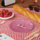 Imitate mit hellrosa Rose Glitzer Monogram Pappteller