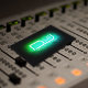 Musik inspiriert berufliches Cover ideal für DJ und Musikproduzenten. Neon sieht bedeckt aus mit Riesendejay-Initialen und Equalizer.