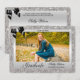 Elegante, kundenspezifische Groß-Foto Silber und Schwarz Graduation Party Einladungen für Mädchen mit einer schönen glitzernden silberfarbenen Bildsequenzierung Juwelen, Edelsteine Muster und eine niedlich glänzende schwarz gedruckte Buggrafik und hübsche digitale Diamantschmuck auf einem schicken silbernen Hintergrund. Wenn Sie Hilfe bei der Anpassung Ihres Produkts benötigen, kontaktieren Sie mich bitte über meinen Shop und ich werde Ihnen gerne weiterhelfen. Platzhalter-Foto von Emery Co Foto - Flickr unter Creative Commons Lizenz: https://creativecommons.org/licenses/by-sa/2.0/ BITTE BEACHTEN: Dies sind flache gedruckte Grafiken - keine echten Bögen, Sequenzen oder erhabene Teile.