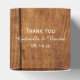 Passen Sie die lässige und dennoch elegante Imitate Barnholz, White Hydrangea und Barn Wood Gastgeschenk Hochzeit Box mit den persönlichen Namen der Braut- und Bräutigam und Heiratsdatum an und füllen Sie die Gastgeschenke oder kleine Geschenke für die Gäste, die Ihre informelle ländliche Farm oder Ranch Stil Brautparty oder Heirat Empfang. Die rustikalen, rustikalen Imitat aus Holz-Gefälligkeitsboxen verfügen über ein kleines, digital erweitertes Blumenfoto mit einer weißen Hydrangea-Blume-Blüte und Vintages, spitzengetrimmtes Leinentaschentuch auf einem Heuballen mit verwittertem braunem Holzfußboden.