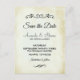 Eine Hochzeit speichern Sie das Datum Postkarte mit einem einfachen, aber eleganten Design. Set auf einem cremefarbenen, Vintag aussehenden Pergamentpapier-Bild. Die weich-braunen Kanten verleihen ihm ein elegantes altmodisches Ambiente. Extravagante Vintag aussehende dekorative Trennlinien mit Ihrem personalisierten Text dazwischen. Personalisierte Nachricht auf der Rückseite und auch Ihre Rücksendeadresse.