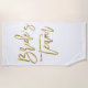Strandhandtuch mit Imitaten Goldbride Team-Text auf weißem Hintergrund gedruckt