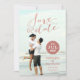 Imitats Rose Gold Foil Glamour Handschrift | Foto Save the Date Karte. Elke Clarke© Abrufbar unter www.zazzle.com/monogramgallery. Modernes minimalistisches Foto-Overlay-Design mit den Worten "Rett unser Datum" in der Rose Gold Handschrift Drehbuch. Eine Rose goldener Punkt für den Hochzeitstag und Text für die Braut- und Bräutigam-Namen und den Hochzeitsankündigung Informationen Text. Imitate Rose Gold-Folie ist ein gedruckter Foto-Effekt. Andere Farben sind in unserem Shop erhältlich.