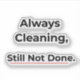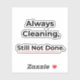 Immer am Putzen, immer noch nicht fertig – ein lustiger und nachvollziehbarer Aufkleber für jeden, der das Gefühl hat, dass die Hausarbeit nie endet.