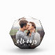 Mit diesem einzigartig geformten Acrylblock, der perfekt für Paare geeignet ist, können Sie Hochzeit, Verlobung, Jubiläum, Flitterwochen oder besondere Momente genießen. Fügen Sie ein beliebtes Foto hinzu, mit "immer" überlagert in lässiger Schriftzeichen und Ihren Initialen darunter.