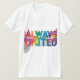 Das "Always United" T - Shirt Design zeichnet sich durch eine leistungsstarke Grafik ineinander greifender Hände aus, die eine Herzform in der Mitte bilden. Das Herz zu umgeben ist ein kühnes, dynamisches Skript, das "Immer vereint" lautet. Das Design verbindet ein Gefühl von Verbindung und Stärke und ist somit eine ideale Wahl für diejenigen, die Solidarität und Zusammengehörigkeit schätzen.