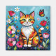 Cat themed magnet. A cute orange cat sitting in flowers and surrounded by butterflies. The art is in an impasto oil paper quilling style.