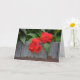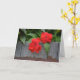 Ce carte pour notes présente des fleurs d'impatiens luxuriantes drapées sur un vieux planteur de tonneaux de vin