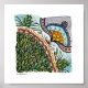 Au cours de la distanciation sociale pour Covid-19, j'ai créé un doodle quotidien avec de l'encre et de l'aquarelle sur une couleur d'eau carré 5,25x5,25. Il s'agit d'une impression de taille originale pour la pièce créée le 28 mai 2020.