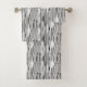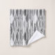 Serviette sertie dans un imprimé ruban abstrait moderne du milieu du siècle dans les tons gris / gris, allant du charbon profond à l'argent clair, accentué de blanc
