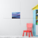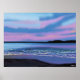 Tableau graphique d'un coucher de soleil rose sur l'eau bleu cristal. Ressentez les vagues de l'océan qui viennent sur le rivage avec cette oeuvre originale de Magins Creations.