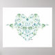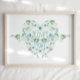 Beaux mésanges bleus et verts aux tons doux dans un cœur rempli de fleurs avec les mots "Aimer plus" de Jenn Steffen Art pour Studio Posies. Décoration idéale pour une chambre d'enfant ou une nurserie.