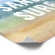 Impression d'aquarelle de soleil de sable de surf parfaite pour une pépinière de surf. Les couleurs bleues se fondent dans le marron imitant les couleurs de l'océan et du sable, terminées par des lettres blanches en gras de soleil de sable et de surf. #surfnursery #surfnurseryprint