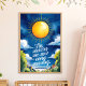 Une illustration aquarelle d'un grand soleil jaune avec des rayons s'étendant vers l'extérieur. Le ciel est d'un bleu profond. Il y a des nuages blancs dans le ciel. Le texte "Ses miséricordes sont nouvelles chaque matin." est écrit en écriture cursive en bas. Le fond contient des arbres verts et quelques bâtiments. L'image globale a une atmosphère sereine.