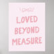 Célébrez l'amour incommensurable de Dieu avec cette impression d'art mural « Aimé Au-Delà De Toute Mesure » rose doux. Avec son lettrage ludique et son nœud délicat, ce design apporte chaleur, encouragement et charme féminin à tout espace. Parfait pour les nurseries, les chambres à coucher ou comme cadeau chrétien attentionné.