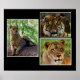 un grand collage d'un guépard, lionne et tigre prêt à être exposé.Photographie originale de ruth jolly voir aussi produits correspondants