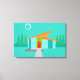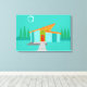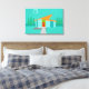 Cette maison Space Age Cartoon en toile étirée Imprimer est un rêve d’amoureux rétro devenu réalité. Le design minimaliste de l'art est composé d'une maison en pierre d'aqua avec de grandes fenêtres bleu paon. Accroché à l'atome, incliné, le toit orange, un luminaire en Spoutnik jaune illumine la porte d'entrée. La porte d'entrée rouge encastrée avec poignée de porte d'entrée est magnifiquement compensée par les planches verticales en bois vert de l'entrée extérieure. Un chemin en pierre grise traverse la pelouse immaculée, qui apparaît turquoise au clair de lune. Derrière la maison, une rangée d'arbres hauts et fins pointe vers le ciel turquoise et la silhouette blanche d'une pleine lune. Si personne n’est visible, les habitants de la maison kitschy sont probablement à l’intérieur en regardant les images d’actualité des astronautes.