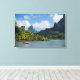 Impression en toile de la baie tropicale de Cook avec un bateau et un arrière - plan de volcans avec palmiers et jungle sur l'île de Moorea, près de Tahiti dans l'archipel Pacifique Polynésie française.