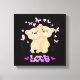 Adorable Valentine Canvas Imprimez avec un mignon couple d'ours en Teddy s'embrassant, petits coeurs et papillons roses, et le mot "Amour" sur arrière - plan noir. Vous pouvez modifier la couleur de l'arrière - plan comme vous le souhaitez.