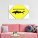 Impression en toile d'un panneau de signalisation jaune avec l'icône 'avertissement requin'.