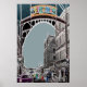 Cette affiche épatante et décalée est une peinture numérique du célèbre Glasgow Barras. Ouvert dans les années 1920, le marché de rue mondialement connu est populaire auprès des locaux et des touristes. Situé à l'extrémité est du centre-ville, il était autrefois le plus grand marché en plein air d'Europe. Le tableau montre l'entrée du marché avec des commerçants et des pointeurs fraisant en dessous.