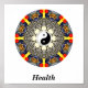 Utilisez le Feng Shui pour améliorer votre santé. Ce mandala a été créé à partir d'images qui représentent la santé. Placez-vous dans le centre de votre maison ou bureau pour promouvoir une bonne santé. Ça fait un grand cadeau ! Conception d'ajout limitée créée par Jeanne Russell. Seulement 50 à vendre dans tous les formats combinés.