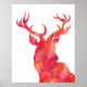Aquarelle claire cerf imprimé de Noël d'une silhouette de cerf rose et rouge aquarelle.