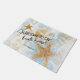 Ce Welcome Doormat a une belle empreinte d'étoiles de mer côtière avec une grosse et petite étoile de mer réaliste et plusieurs autres surimprimés en blanc sur arrière - plan bleu clair et Welcome dans une police de script. Recherchez d'autres produits dans cette collection de poissons-étoiles côtiers. Texte : Bienvenue À Notre Maison De Plage. Customiser votre nom de famille est facile à faire. Conception de Jenn's Emporium.