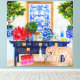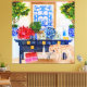 Aquarelle de guépard et son petit dans la chinoiserie intérieure avec citronniers