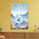 Profitez de cette illustration de style affiche de voyage de vues emblématiques de la VAN - y compris le pont Tacoma Narrows, le Mont Rainier, et diverses espèces sauvages aimées comme Orca, Otter, Hérons, Kingfisher, Bald Eagle, Purple Starfish, Seals, Crabs et Anemone. Nous l'aimons ici en plein air !