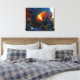 Ballons à air chaud. Tôt le matin, photo de gens regardant la flamme de gaz remplir une enveloppe de ballon avec de l'air chaud. A l'intérieur de l'enveloppe, les couleurs orange, jaune et rouge sont éclairées par la flamme, les couleurs extérieures sont principalement bleues.