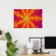 Cette impression aux couleurs vives présente une image fractale qui rappelle un orage sur Vénus. Il a un arrière - plan orange vif avec des lignes jaune vif qui sortent du centre qui ressemblent à des boulons brûlants de la foudre. Au centre de chaque éclair, il y a une ligne bleue qui me rappelle une veine qui donne le titre de Thunderstorm veineux.