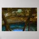 Une source souterraine et son escalier en bois jusqu'au débarcadère de plongée. Un trou de plafond dans la grotte a des vignes de lierre qui s'y jettent un oeil.