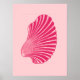 Imprimer dans un motif d'impression en bloc, basé sur une coquille de pétoncle, en rose fuchsia profonde sur un arrière - plan rose pastel